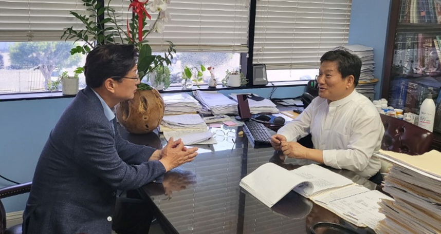 지난 4월, 클레어몬트 신학대학원(이하 CST)의 이종오 부총장은 학교 발전을 위해 CST의 주요 기부자들과의 만남을 가졌다. 먼저 이종오 부총장은 강신욱 박사(강신욱내과 원장)를 만나 학교와 학생들의 지원을 위한 앞으로의 계획에 관해 이야기를 나누었다. 강신욱 박사는 감리교신학대학교를 졸업한 후, 클레어몬트 신학대학원에 입학하여 석사과정을 졸업한 CST 동문이다. 말씀과 의술로 영혼과 질병을 치유하라는 소명을 받은 그는 1989년에 UCLA의예과와 Loma Linda의과대학을 졸업하고 45세의 나이에 의사가 되어 21년간 목회와 의술로 많은 사람들을 주님께 인도했다. 2019년에 은퇴한 강신욱 박사는 현재 강신욱 내과 원장으로 진료하며 많은 사람들의 생명을 살리는 사역을 계속하고 있다. 특별히, 강신욱 박사는 23년 가을에 클레어몬트에 입학하는 두 명의 신학생을 위한 장학금을 지원하고 있고, 앞으로 더 많은 학생들을 지원하는 방향으로 지원을 확대하고 싶다는 자신의 비전과 소명을 밝혔다.