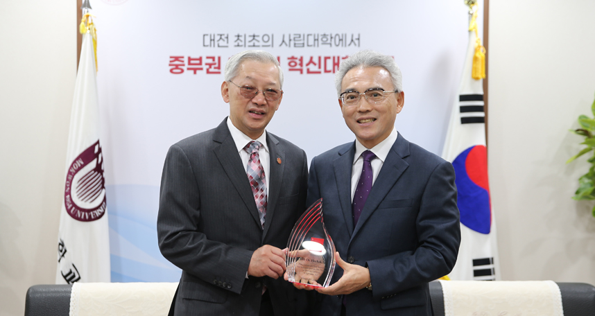 Last year, Claremont School of Theology celebrated the new president of Mokwon University by presenting a congratulatory plaque honoring the cooperative partner school. CST President the Rev. Dr. Jeffrey Kuan presented the plaque to the Rev. Dr. Heehak Lee, the 10th president of Mokwon University. In a lecture for Mokwon students, Kuan’s topic was “Reading the Moses Narrative for Leadership in a Multicultural World.” He also conducted a student information session. Three CST alumni from Mokwon currently serve as faculty members at Mokwon University.