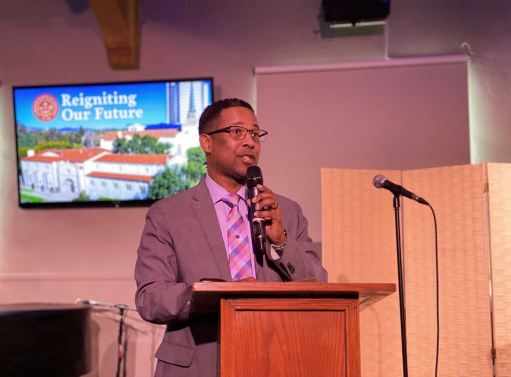 Multiple United Methodist bishops were in attendance, including Resident Bishop of the California-Pacific UMC Conference and CST Board Member Rev. Dr. Dottie Escobedo-Frank, who highlighted the strong historic and ongoing partnership between the school and the Cal-Pac UMC Conference, retired Bishop Mary Ann Swenson, and Resident Bishop of the Greater Northwest Episcopal Area Rev. Cedrick Bridgeforth (pictured above), who served as the event host for the evening.